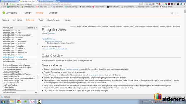 This video shows an example of RecyclerView in Android. The RecyclerView is considered as a replacement for the standard ListView. It requires the android.su...