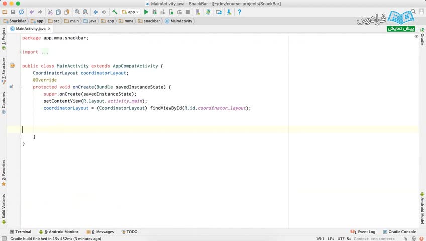 درس دوم: آشنایی با SnackBar و اعمال تغییرات برای شخصی سازی اسنک بار