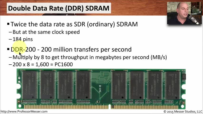 a+, 220-901, certification, comptia, free, james messer, professor messer, memory, rom, prom, eprom, eeprom, sram, dram, sdram, sdr, ddr, ddr2, ddr3