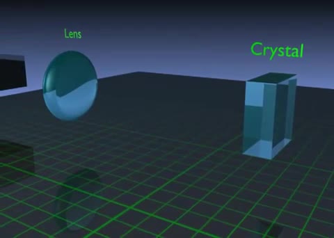 Animation of a single photon source based on parametric downconversion. A single blue photon is annihilated in a nonlinear crystal and two red photons are cr...