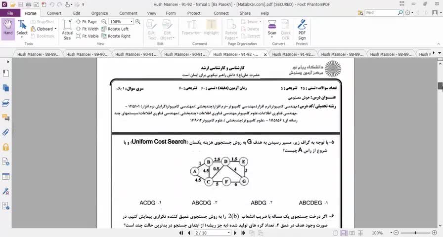 دانلود نمونه سوالات هوش مصنوعی به همراه پاسخ نامه ازلینک زیر:https://matlabkar.com/sample-question-intelligence-artificial-pdf