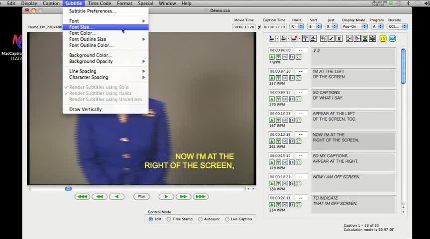 MacCation has a special Subtitle Mode that users can set to change font, color, and placement for a variety of video delivery options.