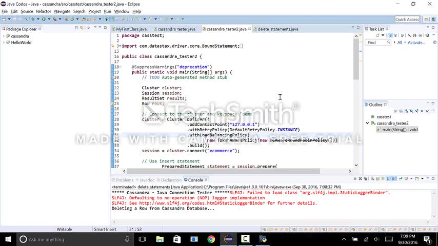 In this video I will be demonstrating Cassandra Java Integration and executing insert, select, update and delete queries on Cassandra database from Eclipse(j...