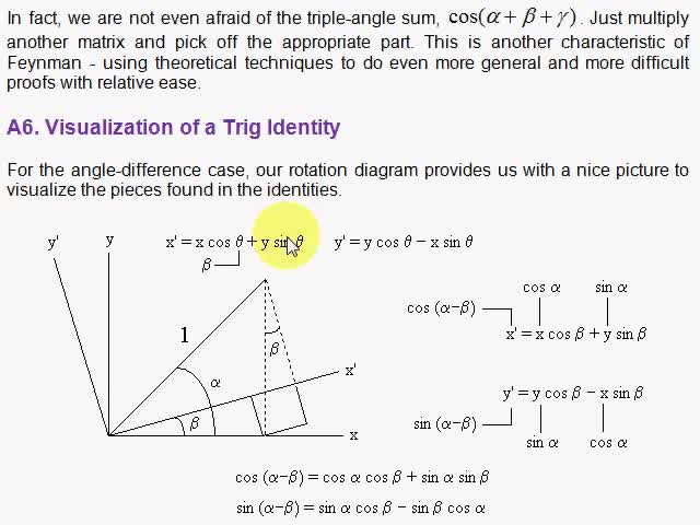 Here we visualize the trig identity involving the cosine of a difference of angles using the construct for the rotation matrix.