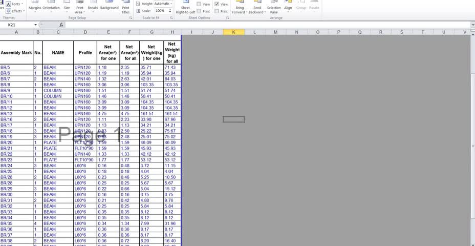 איך להוציא רשימת חלקים בEXCEL עם תוכנה TEKLA