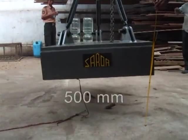 a 1000 x 1100 Permanent Magnetic Separator under a operating height test. the magnet designed for an operating height of 300 mm could lift a M8x40 bolt from ...