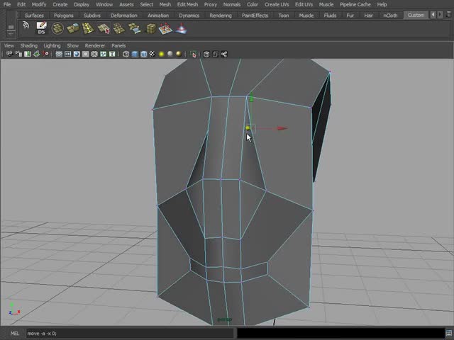 Using Maya we will model a basic head shape. The main idea here is to create a base low poly mesh that has all the primary edges.