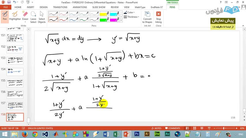 حل و بررسی معادلات دیفرانسیل (Differential Equations) یکی از مهم ترین مباحث در ریاضیات محض و کاربردی، فیزیک و رشته های فنی-مهندسی می باشد. چرا که معادلات دیفرانسیل، علاوه بر اهمیت تئوریک و نظری که دارند، زبان استاندارد مدل سازی ریاضی و توصیف رفتار سیستم ها و طبیعت نیز هستند. از این رو، یکی از مهم ترین درس هایی که در مقطع کارشناسی بسیاری از رشته های فنی-مهندسی و علوم پایه تدریس می شود، درس «معادلات دیفرانسیل معمولی» (Ordinary Differential Equations) است.