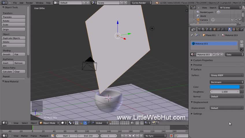 http://www.LittleWebHut.com This Blender video demonstrates how to make an image of a cloth napkin draped over a glass cup. Blender's cycles render engine is...
