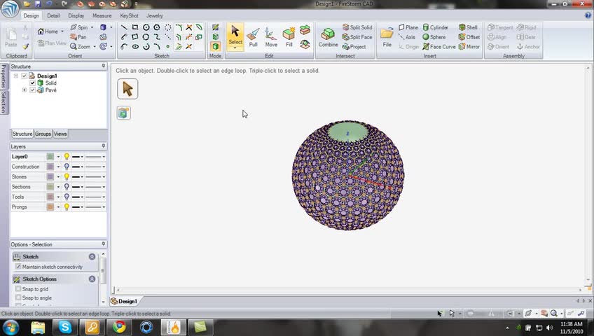 Pave, on, Sphere, firestorm, cad, 3d, design, ignite, technology, space, pro, jewelery, pave, stone, diamond, ring, earing, pendant, cast, wax, mold, gold, s...