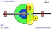 Transmission ratio i = 2/3 An embodiment of "Pin gear drive 1E1" with helical pins and teeth.