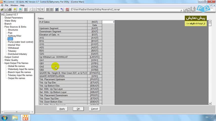 درس یکم: معرفی مدل CE-QUAL-W2