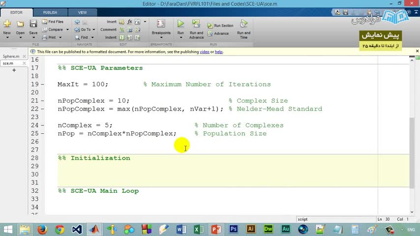 پیاده سازی گام به گام الگوریتم SCEUA به صورت عملی در محیط نرم افزار متلب