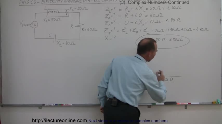 Visit http://ilectureonline.com for more math and science lectures! In this video I will find Z(L), Z(R), Z(C), Z(T), X(T) = ? of a RCL circuit using complex...