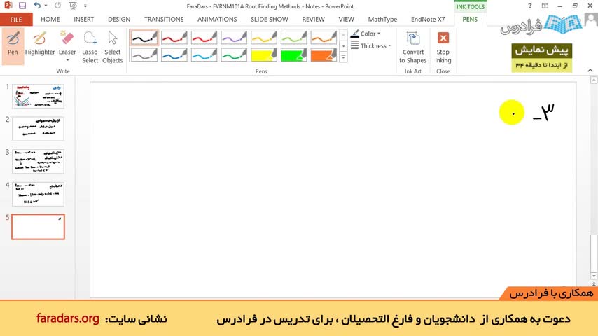 برای کسب اطلاعات بیشتر، به این لینک مراجعه نمایید: http://www.faradars.org/fvrnm101 ریشه یابی (Root Finding) و حل معادلات، یکی از مهم ترین انواع مسائل است که...