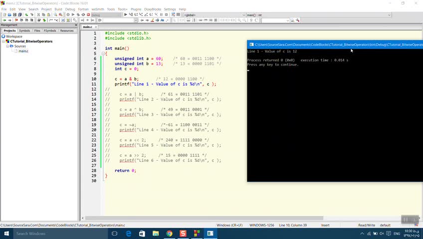 آشنایی با عملگرهای بیتی در زبان C در لینک زیر:https://sourcesara.com/bitwise-operators-in-c