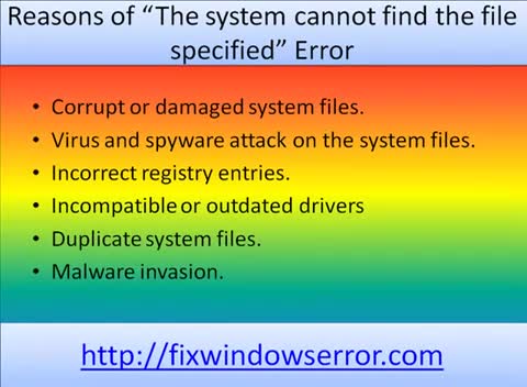 http://fixwindowserror.com/fix-the-system-cannot-find-file-specified-error Are you getting this error code on your PC? While working on the normal computer w...