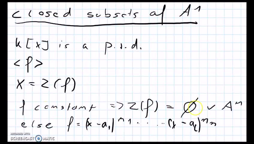 Hunderte Videos zur Hochschulmathematik: Abonniere Mathekanal http://www.youtube.com/subscription_center?add_user=TheSubNash--~--We look at closed subsets of A1 in the Zariski topology
