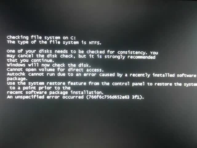 Это Интересно. www.youtube.com/chelobred Проверить диск на ошибки не удалось после перезагрузки. 1. Поставить обновление Windows. 2. Пуск - chkdsk c /f