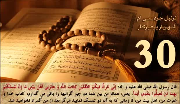 ثواب تلاوت جزء سی ام قرآن کریم را به محضر مبارک بقیة الله الاعظم حجة بن الحسن العسکری عجل الله تعالی فرجه الشریف تقدیم می کنیم. لطفا به نیت فرج امام زمان علی...