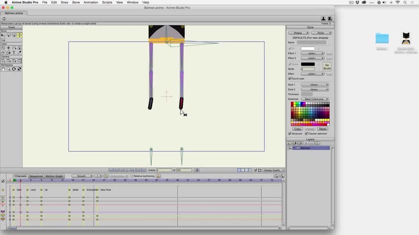 We will animate Batman from our rigged Anime Studio file from Episode 2. This episode focuses on Animation Principles such as anticipation and follow through...