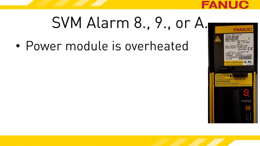 Servo Amplifier Alarm 8., 9., A. CNC Alarm SV0449 or SV0603 Applies to Alpha i Servo Alarm 8., 9., or A. on the Alpha i servo amplifier is an intelligent pow...