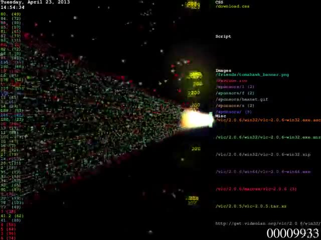 DDOS, load-balancing, vlc, VLC, Media, Player, (Software), mirrorbrain, logstalgia