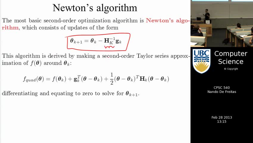 nando de freitas, machine learning, Newton's method, optimization, gradient descent, online learning, batch learning, gradients, linear regression