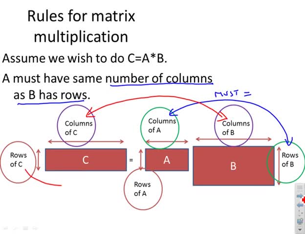 Gives the definition of matrix multiplication. This is done in two ways. The first is a number of illustrations using real numbers and the second is a formal...
