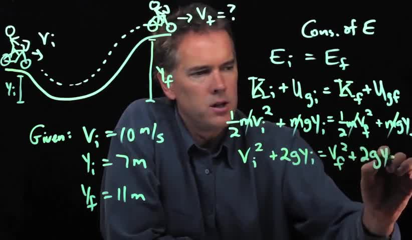 A bicycle goes through a dip and then up a hill. What is its final speed, using conservation of energy? HW K 10 12