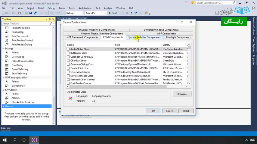 درس یازدهم: تکمیل ابزارهای استاندارد Visual Basic .Net