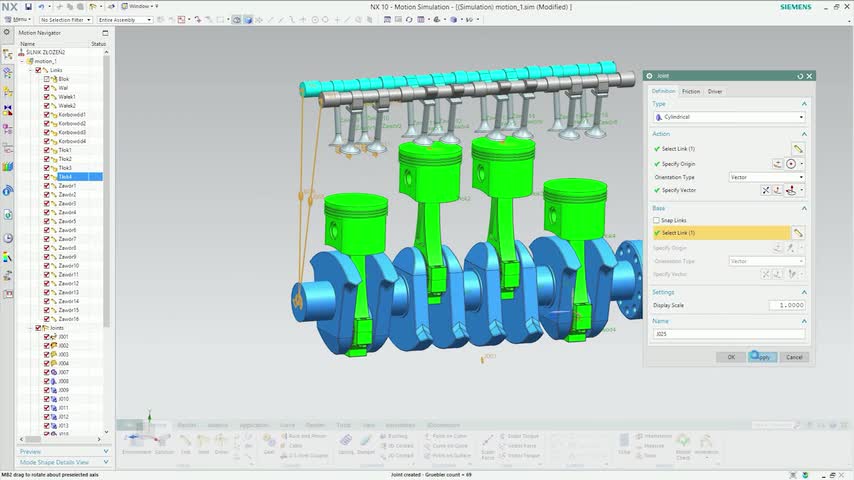 Animation of a simple engine, constructed with Siemens NX - Motion