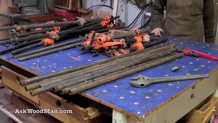 Pipe clamps http://AskWoodMan.com/ In this video I talk about the clamps we are going to use for gluing the banding to the plywood. I show how to switch pipe...