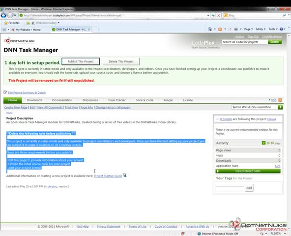 Part 12 of our Task Manager series covers what you need to do with your Project on Codeplex within 30 days of creation. If you don't go through these steps t...