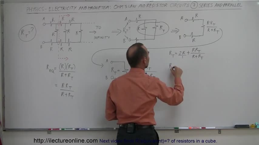 Visit http://ilectureonline.com for more math and science lectures! In this video I will find R(equivalent)=? of infinite resistors in series and parallel.