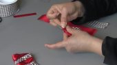 Learn how to make a tick tock style cheer bow with mystique fabric strips, iron on vinyl and wide cheer grosgrain ribbon. The supplies used to make this cheerleader style bow are available at https://www.cheerbowsupply.com