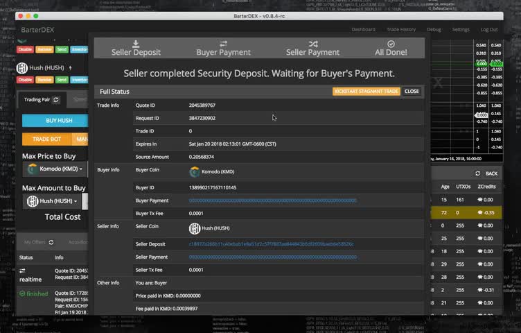 Demo of an atomic swap between Komodo and Hush. Small introduction into using BarterDEX
