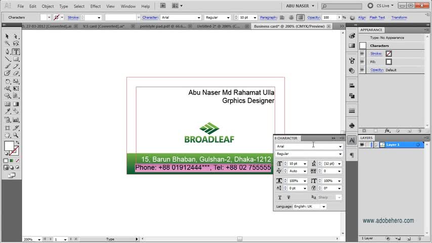How to, adobe, illustrator, cs5, tutorial, in, bangla, create, business card, v.s card, visiting card, dhaka, bangladesh, bangla vasha, adobehero, adobehero.com