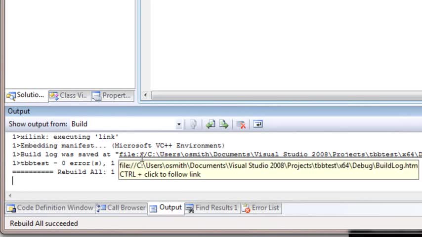 Walk through of creating and configuring a Visual Studio 2008 project to introduce/use/test Intel's Threading Building Blocks tools.