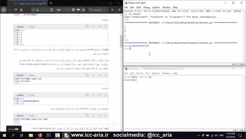 در این قسمت از آموزش زبان برنامه نویسی پایتون به نحوه ساخت یک ماژول در این زبان می پردازیم. برای درک بهتر مطالب به سایت www.icc-aria.ir مراجعه نمایید.