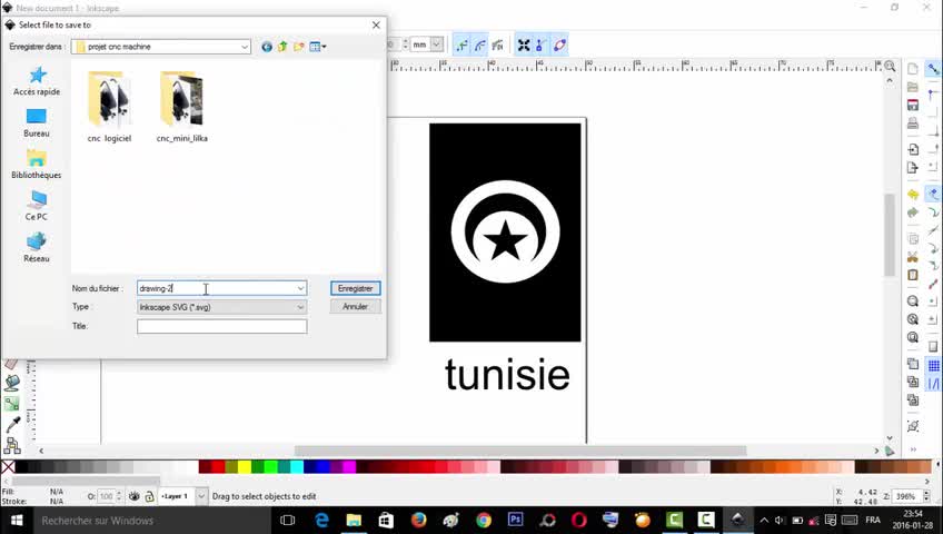 A l’aide de logiciel ‘’ Inkscape ’’ on est extraire les images en code G et puis on utilise l’interface de logiciel ‘’ processing-3.0.1 ’’ qui va envoyer les coordonnées de notre code G au cours de fonctionnement au carte arduino.