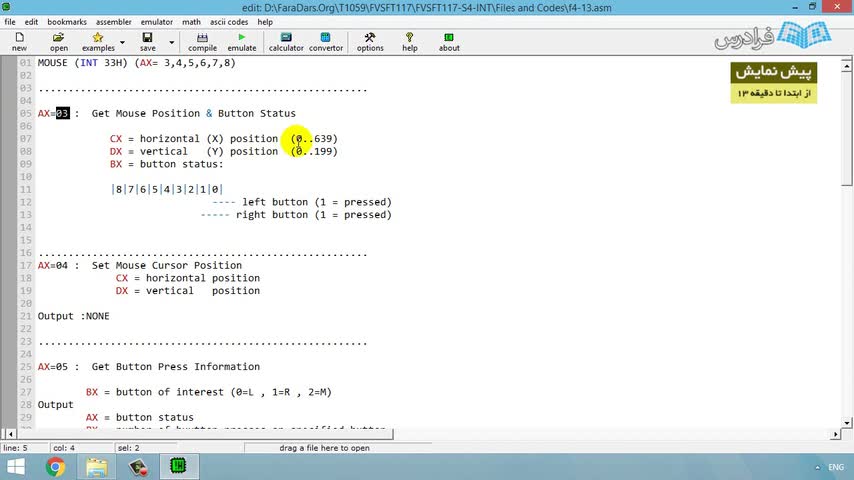برنامه نویسی موس (وقفه ۳۳H)