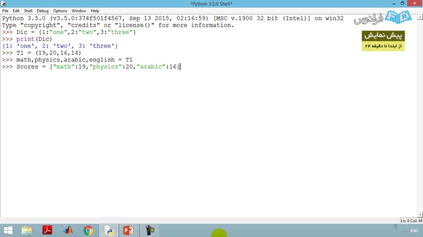 تعریف و فراخوانی یک دیکشنری