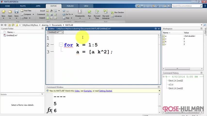 Learn about the for-loop concept and how to create for-loops in MATLAB.