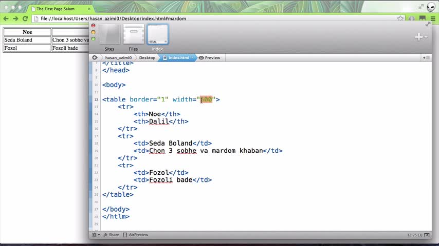 ۱۴- عرض جدول، cellpadding و cellspacing در XHTML