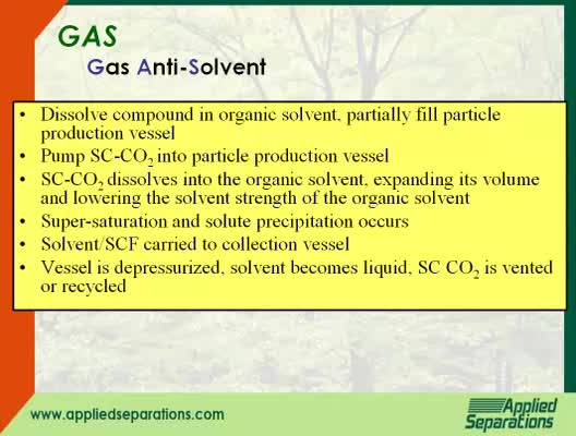 An overview of the methods used to produce nanoparticles using supercritical fluid. for more in formation, visit http://www.appliedseparations.com/Supercritical