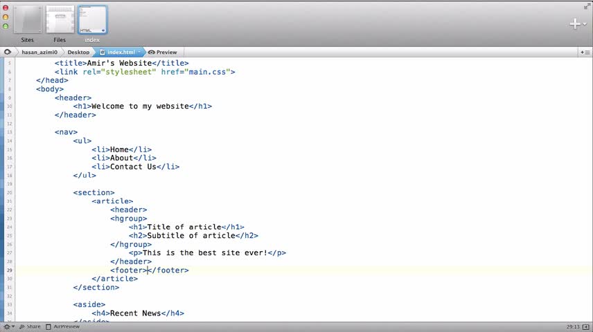 ۴- درست کردن بدنه ی اصلی در (HTML5)
