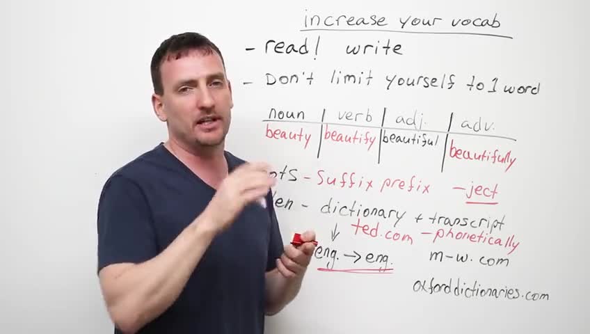 http://www.engvid.com Here are some great tips for remembering your vocabulary and learning new words. This lesson will show you how to learn more than one new word at a time and how to practice learning and remembering words that will improve all areas of your English quickly. Watch the video, then take the quiz: http://www.engvid.com/how-to-increase-your-vocabulary/