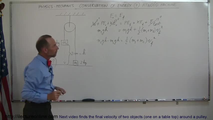 Visit http://ilectureonline.com for more math and science lectures! In this video I will show how to calculate the final velocity of an atwood machine.