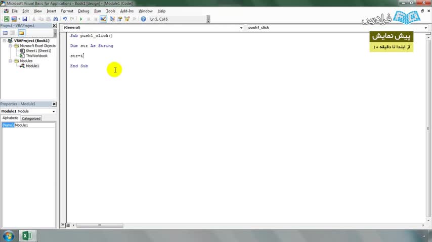 درس پنجم: حوزه تعریف Local و Global متغیر در محیط VBA